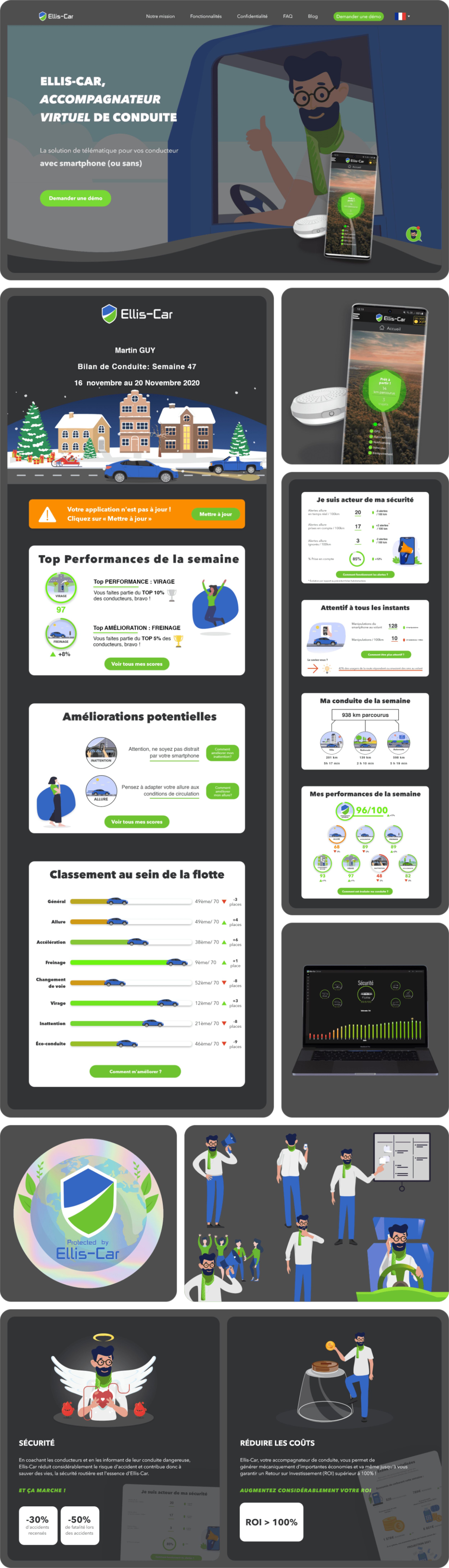 Ellis-Car est une application de sécurité routière qui a pour mission de réduire les accidents de la route mais également de diminuer les dépenses ainsi que la pollution automobile des flottes d’entreprise. Refonte du site web, de l’application et de l’identité de la marque.